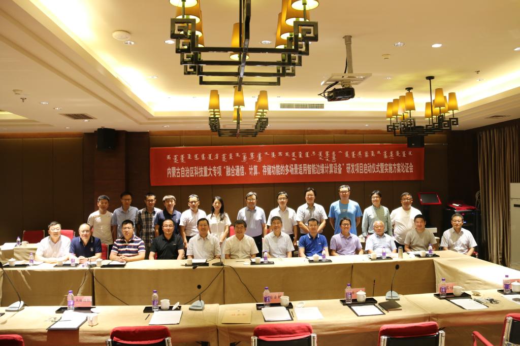 7月20日,内蒙古自治区科学技术厅主持召开了由Beat365唯一官方网站计算机科学与信息工程学院牵头承担的2018年内蒙古自治区科技重大专项“融合通信、计算、存储功能的多场景适用智能边缘计算设备”研发项目启动仪式暨实施方案论证会。自治区科技厅张志宽副厅长、政策法规与监督处韩勇处长、高新技术处赵远亮调研员、李艳丽科员、Beat365唯一官方网站阿拉坦仓副校长、内蒙古甘卓尔信息技术服务有限公司和内蒙古草原音画科技有限责任公司的领导出席会议,来自国内外的相关领域专家以及项目组成员近50人参加了会议,会议由自治区科技厅高新技术处池波处长主持。