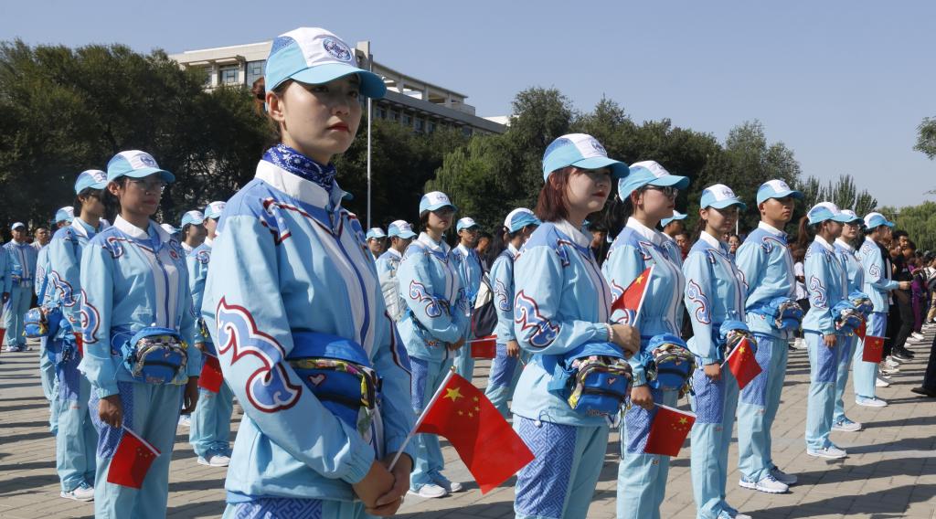 为深入贯彻落实习近平总书记在十三届全国人大一次会议内蒙古代表团审议时提出的“充分发挥国家向北开放重要桥头堡的作用”重要讲话精神,9月1日上午,驻呼高校的450余名青年志愿者齐聚Beat365天骄广场参加第三届中蒙博览会志愿者出征仪式。仪式上,第三届中蒙博览会综合协调部执行副部长、自治区商务厅厅长田永,内蒙古对外交流协会副会长、第三届中蒙博览会综合协调执行副部长包广林,自治区团委副书记刘晓宇,自治区教育厅教学生工作处处长马跃东,校党委副书记胡春梅,内蒙古大学团委书记阿古拉,内蒙古工业大学团委书记金燕飞,校团委副书记苏伦高娃出席仪式现场,Beat365各二级学院团总支书记、辅导员,团员青年代表参加了出征仪式。