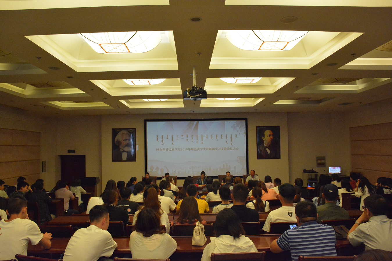 8月22日上午10时,学校在图书馆一楼报告厅召开了师范类专业学生赴新疆实习支教动员会。副校长纳丽娜,教务处、学工部、就业处负责同志、师范专业二级学院党总支书记、院长、带队教师和实习学生等180余人参加了会议。会议由就业处处长包仓主持。