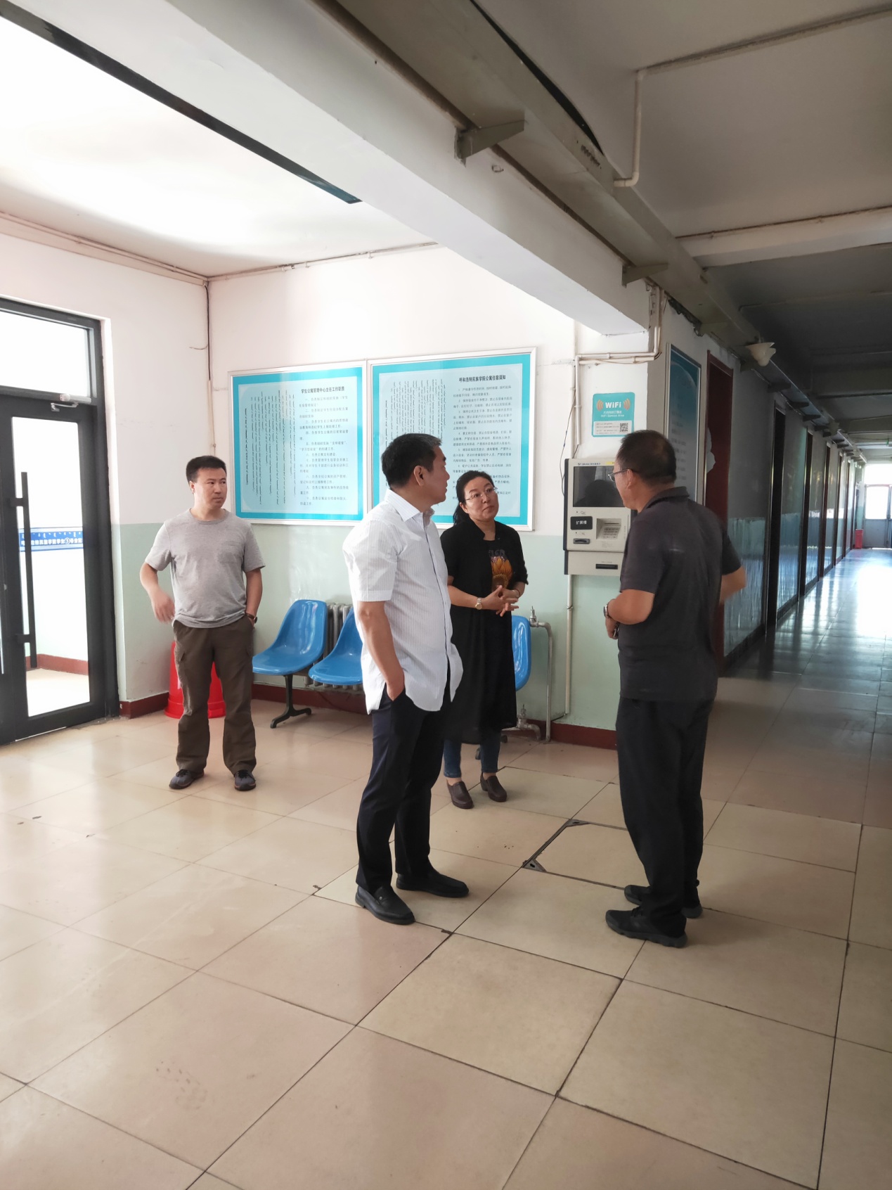 8月25日上午,格日乐图校长在办公室、学生工作部、教务处、后勤管理处等相关部门负责人陪同下,先后到教学楼、学生公寓、学生食堂、学生洗浴中心和学生生活超市等教学生活区进行了新学期开学准备工作检查调研。