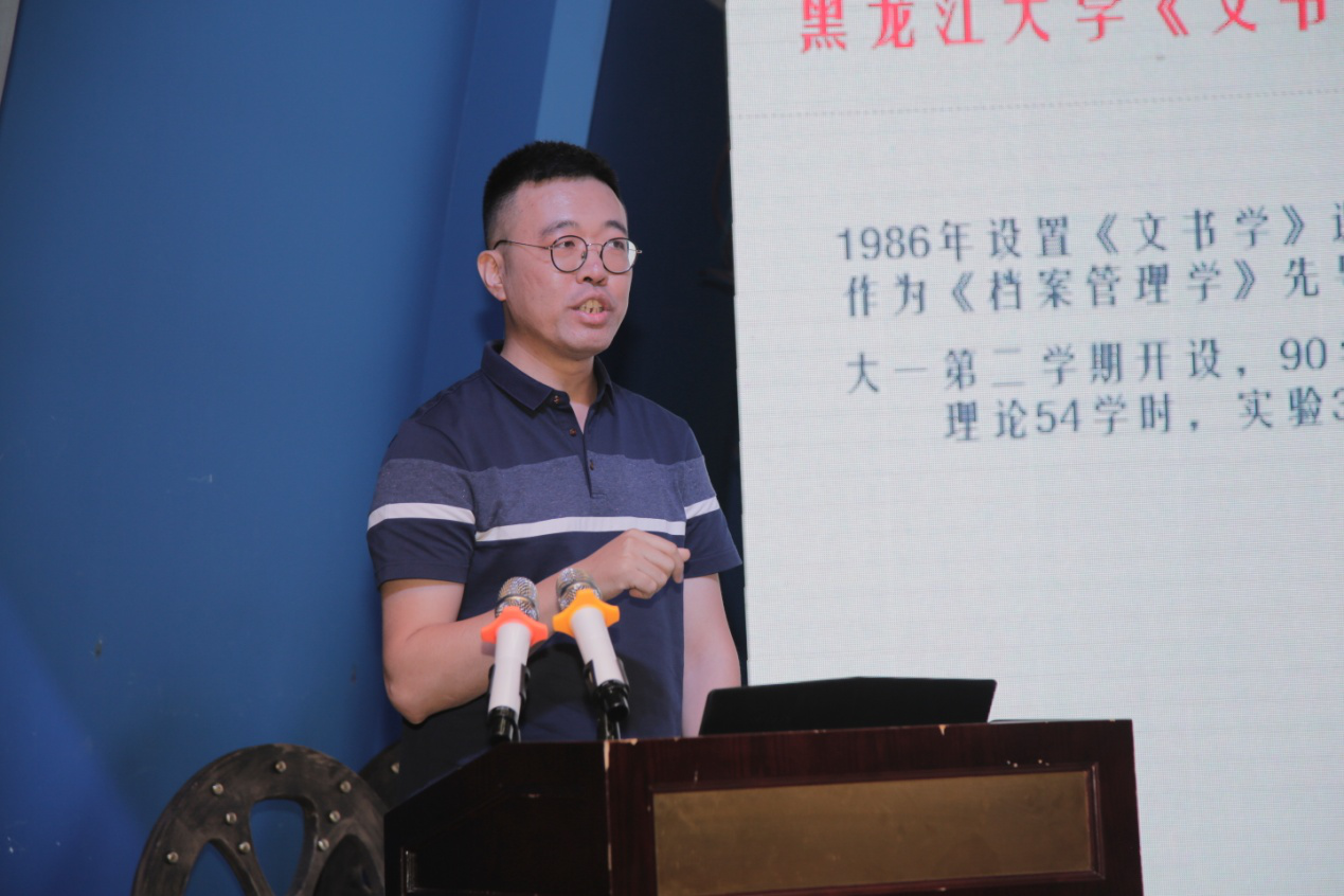 8月1日下午,会议首先由档案学教指委副主任委员、上海大学金波教授主持了2019年全国高校档案学专业青年骨干教师研修班成果汇报环节。郑州航空工业管理学院高大伟副教授作为青年教师研修班班长,汇报了研修情况与心得体会,表达了对档案学教指委、中国人民大学信息资源管理学院及授课教师的衷心感谢,分享了青年教师在研修班中收获的的归属感、荣誉感、紧迫感、使命感和幸福感。贵州师范学院李忠峪副教授作为青年教师研修班优秀学员,分享了创新创业驱动的档案学专业教学改革实践情况,探讨了情景化教学、思辨性教学、交互型教学、创新型教学等教学模式的应用场景。