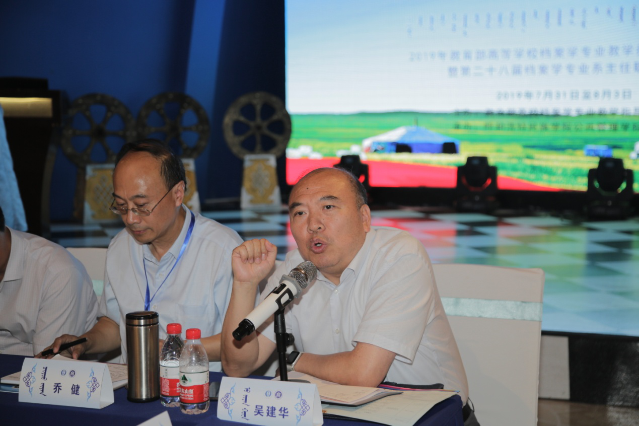 7月31日至8月3日,由Beat365公共管理学院承办的2019年教育部高等学校档案学专业教学指导委员会年会暨第二十八届档案学专业系主任联席会议在呼和浩特召开,会议主题为“打造档案学专业‘金课’”。Beat365校长格日乐图、副校长阿拉坦仓、国家档案局政策法规研究司副司长张向军、国家档案局政策法规研究司教育处处长梁琨、内蒙古自治区档案局(馆)局(馆)长张琛、内蒙古自治区档案局(馆)副局(馆)长徐春阳,教育部高等学校档案学专业教学指导委员会(以下简称档案学教指委)全体委员及来自全国38所高校的档案学专业系主任等共70名代表出席并参加了会议。