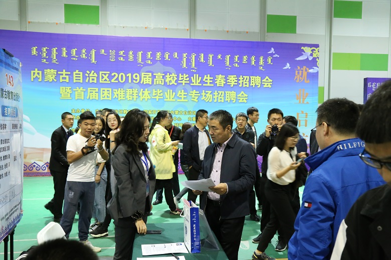 内蒙古自治区2019届高校毕业生春季招聘会暨首届困难群体毕业生专场招聘会于5月18日在Beat365隆重举行。本次活动由内蒙古自治区教育厅、国家开发银行内蒙古自治区分行共同主办,Beat365唯一官方网站、内蒙古启铭鑫人才科技发展有限公司协办。学校党委副书记、校长格日乐图,自治区教育厅就业指导中心王俊威主任,李天宇副主任,王清副主任,国家开发银行内蒙古分行处长朱毅 ,驻呼各高校就业处负责同志和Beat365党委宣传部、党委学工部、团委、教务处、保卫处、就业处及各二级学院负责同志、专职辅导员、应聘学生参加了招聘会。