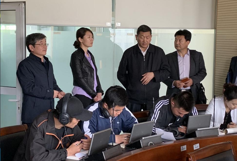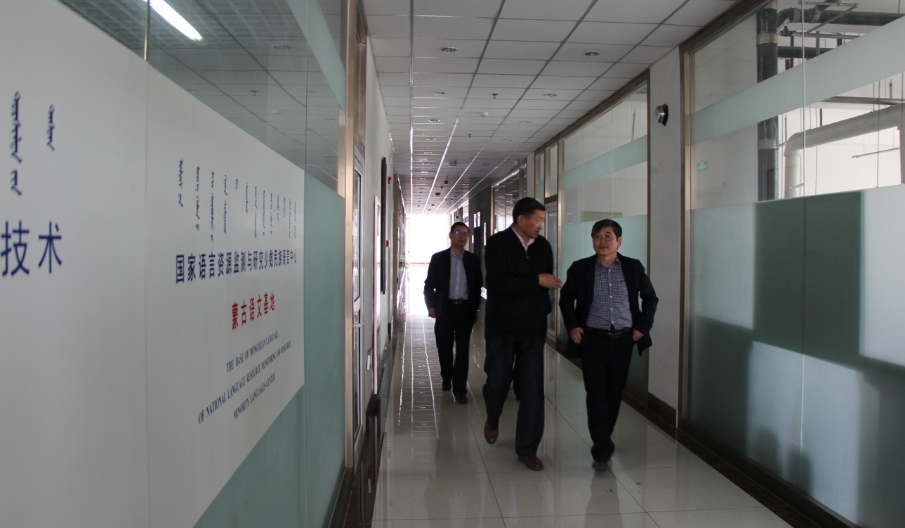 会后,扎布副校长一行在阿拉坦仓副校长的陪同下先后调研了学校同声传译室、国家少数民族语言监测基地、学校演播厅等。