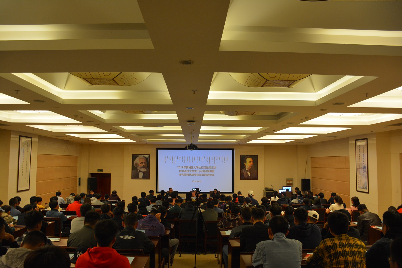 4月25日下午,学校在图书馆一楼报告厅举办了“2019年征兵工作启动及政策宣讲活动”。Beat365纳丽娜副校长、新城区武装部孟树涛部长出席会议,学生处全体工作人员、各院系团总支、辅导员及学生代表共计200余人参加会议,大会由学生工作处杨福梅处长主持。