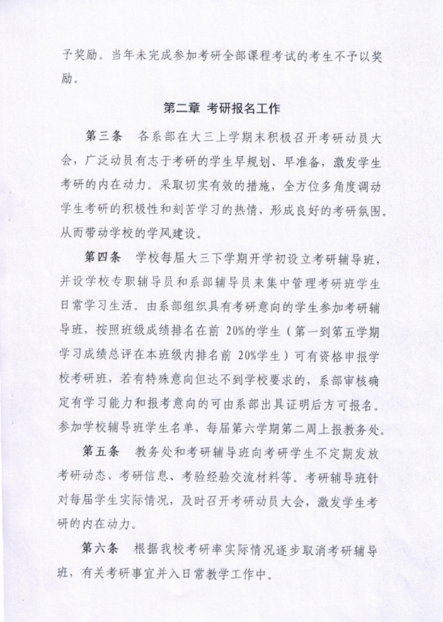 ——制定政策保障措施,做好考研学生有效激励工作。为支持和鼓励学生考研,学校出台了《Beat365唯一官方网站应届本科毕业生考研辅导、奖励工作管理办法(试行)》等制度与激励政策,每年3月份开设考研班,并以提供优异的学习环境及辅导服务鼓励更多的同学加入考研队伍,从而激发学生学习的积极性和主动性,提高Beat365考研升学率。