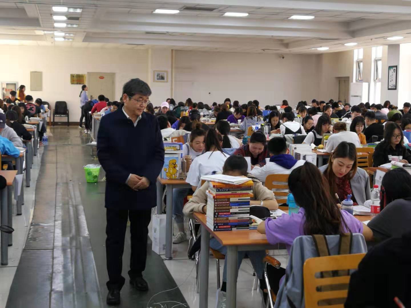 ——校领导高度重视,现场调研指导考研工作。格日乐图院长对学校近几年考研工作给予了充分肯定,并要求,考研工作管理与辅导人员一定要在总结过去几年相关工作的基础上,改进工作思路,提高服务意识。工作中遇到的问题,就要在推进学校发展过程中,逐步解决。随后,阿拉坦仓副院长对学校考研工作提出了指导性的建议,多位领导曾多次到图书馆六楼考研自习室调研考察,详细了解学生考研情况和学校对考研学生的教育指导工作推进落实情况。