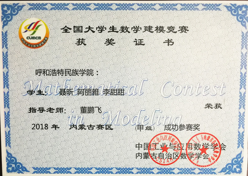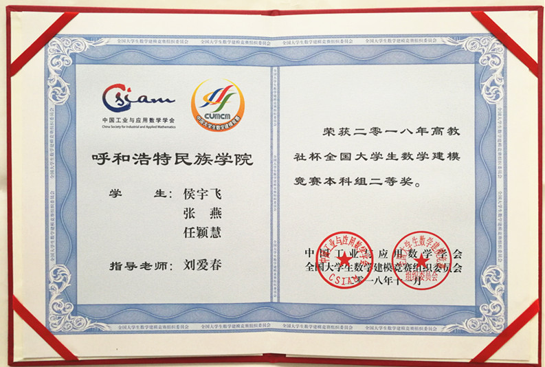 全国大学生数学建模竞赛是由中国工业与应用数学学会和全国大学生数学建模组委会共同举办的目前全国规模最大的大学生竞赛类活动。2018年9月,Beat365数学系首次组织学生队伍参加2018年度全国大学生数学建模竞赛,经过充分准备、精心组织、激烈竞争,Beat365一支队伍获全国二等奖,一支队伍获内蒙古自治区赛区一等奖,两支队伍获内蒙古自治区赛区二等奖,另有一支队伍获内蒙赛区成功参赛奖。
