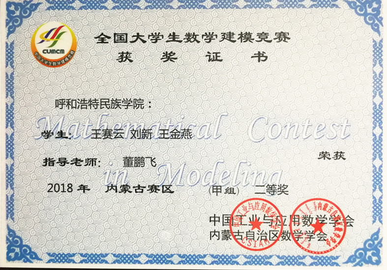 内蒙古自治区赛区二等奖 |