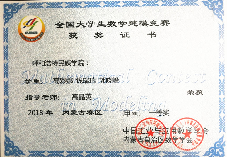 内蒙古自治区赛区一等奖 |