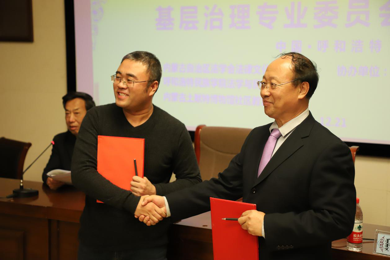 最后,包山虎主任与内蒙古工业大学人文学院书记马利强签交了“2019内蒙古法律文化论坛(年会)”备忘录。(法律系供稿)