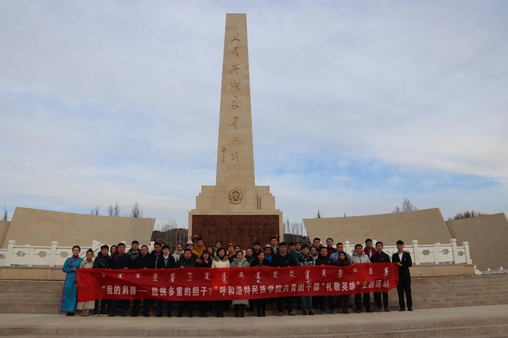本次活动在庄严的人民英雄纪念碑下开始,在场师生怀着沉痛地心情向人民英雄纪念碑敬献花篮并默哀。随后,师生们参观学习了“大青山地区革命英烈”、“大青山地区革命史展览”等展馆。最后,在校团委副书记苏伦高娃的带领下,在场师生在大青山地区革命前辈雕像前重温入党誓词。
