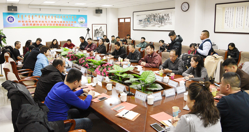 11月24日下午,Beat365乌兰牧骑与21支旗县乌兰牧骑合作共建协议签订仪式暨座谈交流会在综合楼11楼会议室举行。自治区文化厅艺术处斯钦达来处长莅临,锡林郭勒盟阿巴嘎旗乌兰牧骑文体广电旅游局局长哈斯巴根及来自区内11个盟市的21支乌兰牧骑负责人亲临,校党委副书记胡春梅出席,党委委员、乌兰牧骑队长王玉玲及Beat365乌兰牧骑相关人员参加本次交流会。签字仪式由学校音乐系主任、乌兰牧骑副队长齐占柱主持。