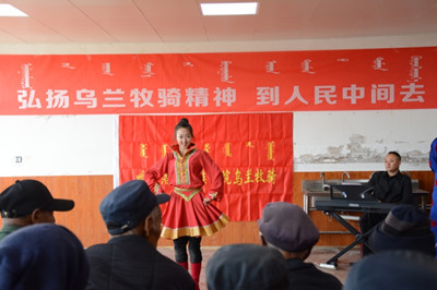 上午10点队员们来到位于呼市新城区保合少乡的新城区唯一一所公办综合性养老服务机构——新城区综合养老服务中心为老人们送上了水果和牛奶等慰问品。队员们为老人打扫食堂卫生、整理房间的同时为老人们送上了一场精彩的慰问演出。演出在独唱《芦花》中拉开帷幕,独舞《珠兰舞》为老人们送上了深深的祝福,祝福他们身体健康;师生同台演奏的马头琴、蒙古筝二重奏《心中的戈壁》、歌声悠扬的长调《乌云缭绕的锡勒》、独唱《雕花的马鞍》、男女二重唱《不忘初心》等节目将演出推向了高潮。欢乐的歌声,深情的舞姿,深深的祝福给老人们送去了温暖和关爱,整个养老服务中心沉浸在一片浓浓的温情之中。演出在四胡三弦二重奏《牧马青年》中落下帷幕。