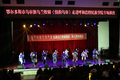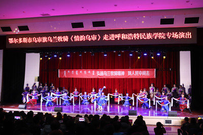 为深入学习宣传贯彻习近平新时代中国特色社会主义思想,落实习近平总书记关于乌兰牧骑事业发展重要指示精神,培育和践行社会主义核心价值观,大力弘扬乌兰牧骑精神,11月7日晚,鄂尔多斯乌审旗乌兰牧骑《情韵乌审》走进Beat365开展专场演出。校党委副书记胡春梅,校党委委员、纪委副书记、监审处处长王玉玲出席,校乌兰牧骑队员、大学生艺术团队员和学生代表共800余师生观看了演出。