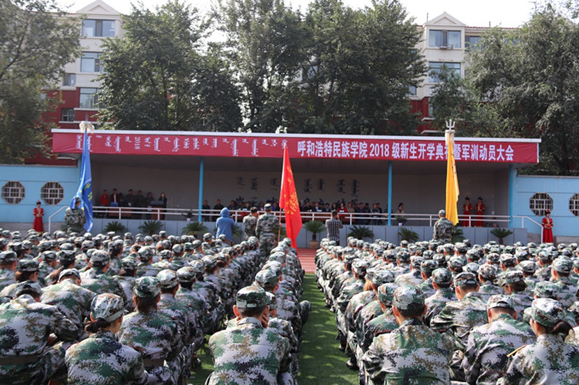 最后,格日乐图院长代表全校师生员工向2018级新同学表示热烈的欢迎和衷心的祝贺,并向同学们介绍了学校过去的发展历程和目前的发展现状和取得的丰硕成果。格院长在讲话中殷切提出五点希望:一是构筑梦想,勇踏征程。作为新时代青年,要谨遵习总书记教诲,不负殷殷重托,把爱国融入灵魂,把责任扛在肩头,把求真作为导向,把力行镌刻脑海,要有社会主义建设者和接班人的使命和担当。二是明确目标,砥砺前行。追求知识,就要积极进取、自强不息,只有勤学苦练、学思结合,努力全面发展,砥砺自己的品行、完善自己的人格、夯实自己的底蕴,才能学以致用、学以致乐。三是团结协作,博采众长。学会与人相处,团结合作,既是生活与工作的基本技能,也是提升幸福感的重要途径。四是乐观进取,完善自我。大学以独特的文化、传统、精神,内化成你们的秉性、涵养、人格,外显为你们的言语、行为、习惯,并以此定位你的人生坐标,完善你的价值建构、促成你的卓尔不凡。五是强化作风,坚毅品质。军训是大学的第一堂课,它就是要培养你们良好的精神面貌和坚韧的意志品质,它要教会你们团结协作、互相帮助,它要让你们清楚一丝不苟、严格要求的真谛,希望通过军训,能够培养同学们高度的集体荣誉感,增强爱国主义精神、爱校意识、纪律观念。