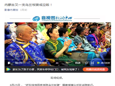 7月8日,内蒙古蒙古语卫视文化频道《新闻调查》栏目发布题为《校园里的乌兰牧骑》新闻,专题报道Beat365乌兰牧骑。该篇新闻追踪报道了Beat365乌兰牧骑的日常排练和第一次下乡演出,展现了Beat365红色文艺轻骑兵的良好风采。