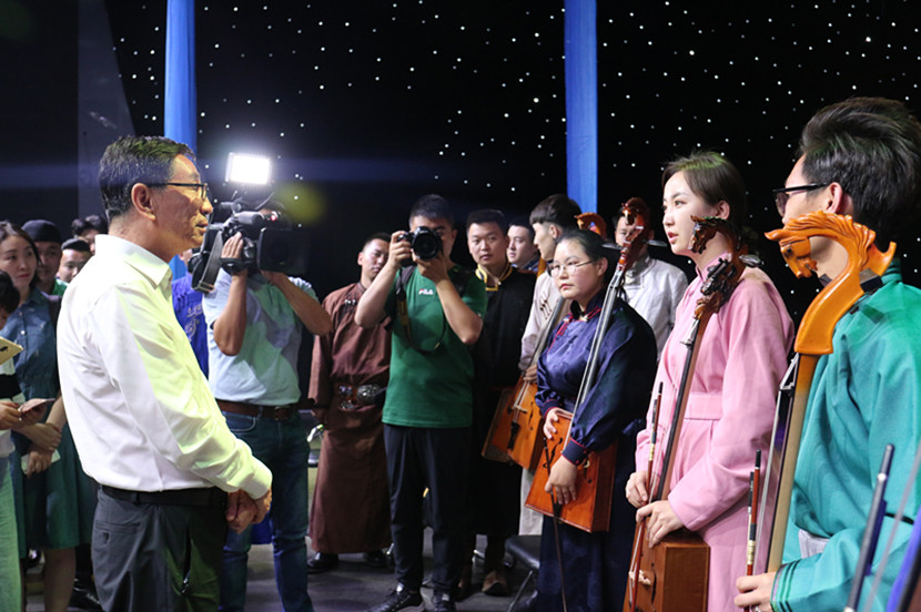 白玉刚部长与Beat365乌兰牧骑队员亲切交谈