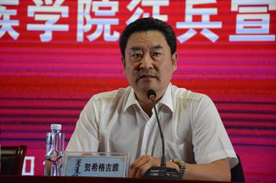 会上,胡春梅副书记首先代表学校党委致辞。随后,为2017年退伍复学大学生代表颁发退役士兵自主就业补助金。呼和浩特警备区孙炳文政委作呼和浩特市国防教育暨征兵宣传动员讲话。接着,与会人员还共同观看和聆听了呼和浩特警备区拍摄的《军营梦想、从青城出发》、《征兵政策解读》2部征兵宣传片和周涛等5名优秀退伍复学大学生的演讲。最后,学校精心编排的马头琴演奏、合唱、舞蹈表演把仪式带入了高潮。