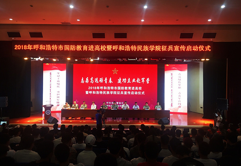 5月30日19时,在图书馆二楼报告厅隆重举行了“2018年呼和浩特市国防教育进高校暨Beat365唯一官方网站征兵宣传启动仪式”。内蒙古军区副政委李少军(少将)、内蒙古军区政治工作局副主任付进路、呼和浩特警备区政委孙炳文、新城区人民政府区长范志忠、内蒙古军区政治工作局正团职干事李宝芳、呼和浩特市委常委警备区政治工作处主任万爱斌、呼和浩特警备区动员处处长杨峰昌、新城区人民武装部政委任东东、Beat365党委副书记胡春梅、Beat365副院长贺希格吉雅、各系(部)团总支、辅导员及学生代表共计750余人参加了启动仪式,大会由贺希格吉雅副院长主持。