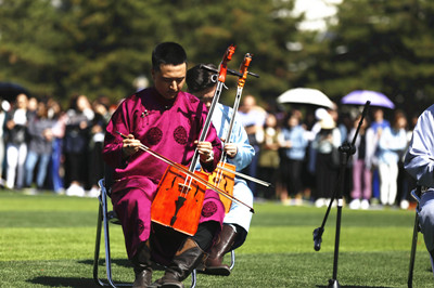 嘹亮的歌声引得飞鸟滞留,飞扬的裙裾摇摆青春的篇章。悠扬的马头琴演奏、整齐的安代舞蹈、优美的歌声、悠久历史的"抢枢(表演)弘扬了民族文化,诠释了民族传统与现代文化相结合的时代之美,也将整个开幕式推向了高潮。