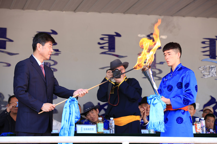 致辞过后,由孙国权书记开启了象征着体育精神的圣火传递环节。体育系副主任乌日根牧仁点燃了圣火盆,由格日乐图院长进行祭火仪式。熊熊的圣火,象征着Beat365各项事业的腾飞。