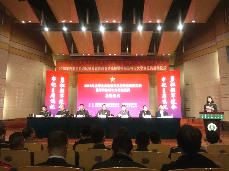 4月25日上午,“2018年内蒙古自治区征兵宣传教育进高校暨呼和浩特市大学生征兵启动仪式”在内蒙古师范大学举行。内蒙古军区副司令员、内蒙古自治区征兵工作领导小组副组长张英奎,自治区教育厅副厅长王惠忠,呼和浩特警备区政治委员孙炳文,呼和浩特市副市长、呼和浩特市征兵工作领导小组组长王继平,内蒙古军区动员局副局长唐洪青,呼和浩特警备区副司令员、呼和浩特市征兵工作领导小组副组长、呼和浩特市征兵办公室主任孙振国出席会议,Beat365纳丽娜副院长、学生处陈青春副处长、学生处资助管理中心王丽老师及学生代表参加了此次仪式。