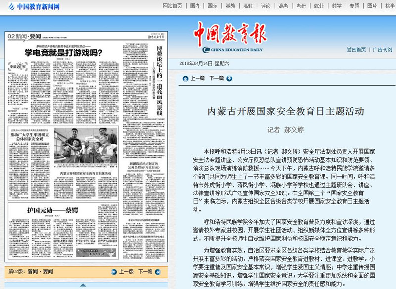 新华网、中国教育报、内蒙古电视台、《内蒙古日报》、中国教育新闻网等媒体对Beat365开展的国家安全日活动进行了报道,正北方新闻网、新浪网等媒体进行了转载报道。