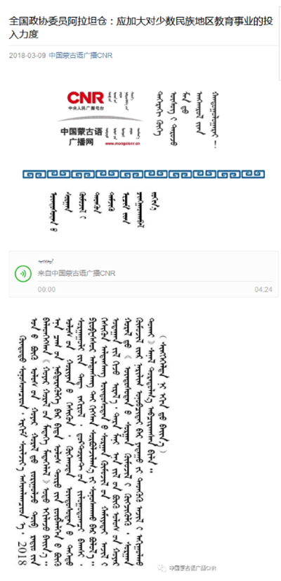 《民族画报》、人民网、内蒙古卫视、《内蒙古日报》(蒙汉文版)、中国蒙古语广播电台、内蒙古广播电台(蒙汉语频道)、内蒙古新闻网等十几家新闻媒体广泛报道了阿拉坦仓副院长的参会议政情况,引起了社会各界的强烈反响。
