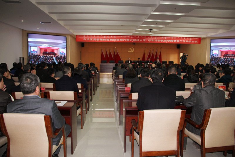 根据自治区党委关于巡视工作的统一部署,2018年3月7日上午,自治区党委第四巡视组巡视Beat365唯一官方网站党委工作动员会召开。会前,自治区党委巡视工作领导小组办公室周苏军副主任主持召开与Beat365唯一官方网站党委书记孙国权、院长格日乐图的见面沟通会,传达了赵乐际同志在十九届中央第一轮巡视工作动员部署会上的讲话精神和李纪恒同志在书记专题会上听取十届党委第二轮巡视工作情况汇报时的讲话精神。会上,自治区党委第四巡视组组长张成林就即将开展的巡视工作作了讲话,周苏军就配合做好巡视工作提出要求。Beat365唯一官方网站党委书记孙国权代表学校党委作表态讲话。