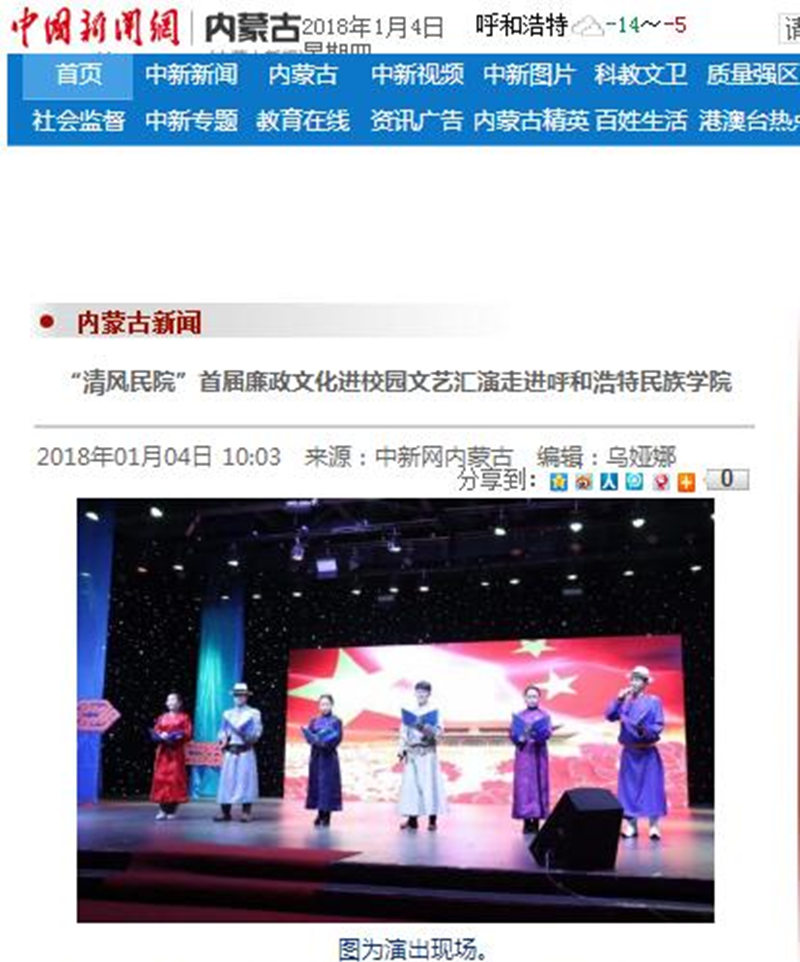 经宣传部推荐,中国新闻网、呼和浩特新闻网对本次汇演进行了报道,扩大了本次活动的影响力。