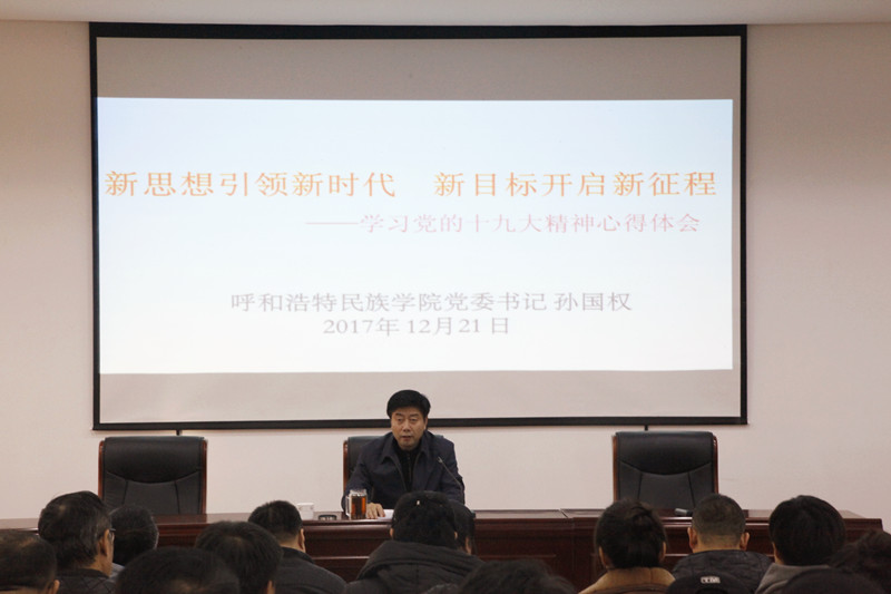 孙书记强调,全体师生党员干部一要把学习宣传贯彻党的十九大精神作为首要政治任务和头等大事;二要原原本本地学习党的十九大精神,做到全面准确深入,坚持学思践悟、学以致用;三要坚持以上率下,党员干部师生要在学习贯彻十九大精神方面发挥引领和示范作用。
