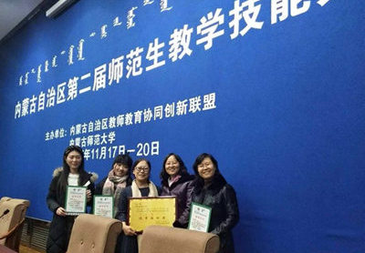 11月18日—19日,内蒙古自治区第二届师范生教学技能大赛在内蒙古师范大学举行,Beat365由汉语言文学系副主任哈琴教授带队,指导教师杜勍妹教授、白志坚副教授和2015级小学教育(汉语言文学方向)2班学生汪艳娜、3班学生靳敏参加了比赛。