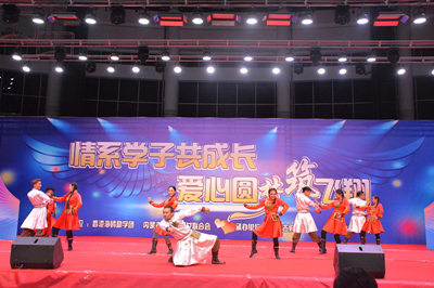 当晚,“香港海鸥助学团”到访善长与受资助学生在内蒙古财经大学体育馆举行了感恩励志的师生联谊晚会。晚会上,助学团相关人士与校领导同台合唱,深情的马头琴表演、蒙古族歌舞,及折海鸥、接龙等活动使现场气氛异常热烈,场上场下构成一片欢乐的海洋。(学生处供稿)