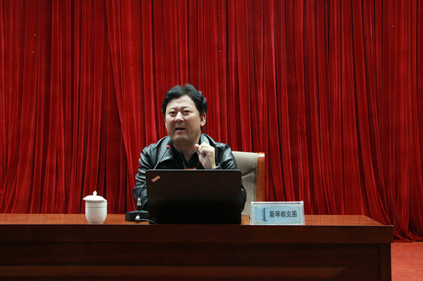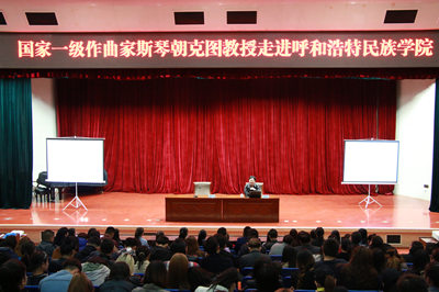 10月27日,作曲博士、国家一级作曲、中央民族大学音乐学院教授、学科带头人、硕士研究生导师、中国音乐家协会会员、中宣部文化名人暨《四个一批人才》、享受国务院特殊津贴、教育部新世纪人才、全国五一劳动奖章获得者、全国五四青年奖章获得者、Beat365客座教授斯琴朝克图应邀在图书馆二楼报告厅为Beat365师生作了题为《我的创作与感想》的专题讲座,500余名师生共同聆听讲座。讲座由科技处处长包赛吉拉夫主持。
