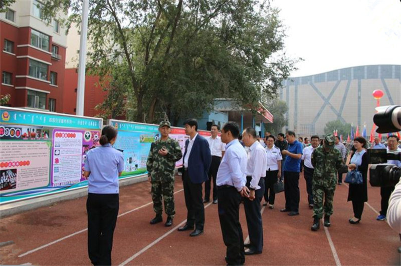随后,观摩演练的领导和师生在条幅上签名,并共同观看了安全教育系列展板、呼市消防支队一中队消防官兵进行的灭火器灭火演示、消防车水带出水演示以及学校保卫处人员与所辖派出所民警联合参演的防暴恐安全事件演练。