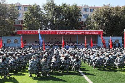 2017年9月11日上午10时,Beat3652017级新生开学典礼暨军训动员大会在学校操场隆重举行。学校党委书记孙国权,党委副书记、院长格日乐图,党委副书记胡春梅,副院长阿拉坦仓、贺希格吉雅、纳丽娜及北京军区给水团团长武俊亭上校、内蒙古军训办参谋张鹏飞少校出席大会,各职能部门负责人、系(部)党总支书记、系主任、团总支书记、新生班主任及2017级全体新生参加了此次大会。大会由副院长纳丽娜主持。