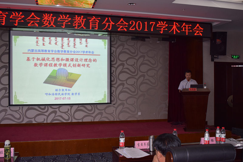 由内蒙古自治区高等教育学会数学教育分会和教育部民族教育发展中心“民族院校应用型学科专业建设”重点研基地主办、Beat365协办的内蒙古自治区高等教育学会数学教育分会2017学术年会于2017年7月14日—16日在呼伦贝尔市举行,全区14所高校的近60名理事、专家和来宾参加。本次学术年会的主题为“创新-实践-发展”,由开幕式、学术报告、微课作品展示和闭幕式四个部分组成。