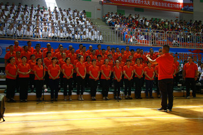 离退休老教师代表队合唱《各族人民心连心》