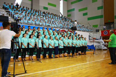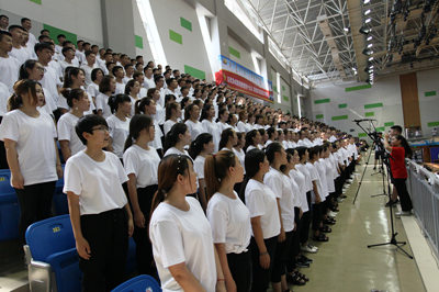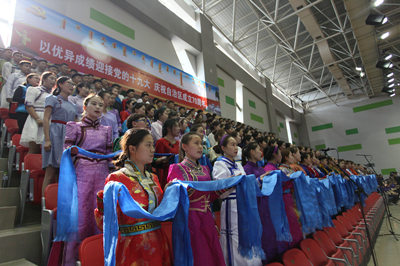 为纪念中国共产党成立96周年和内蒙古自治区成立70周年,以优异成绩迎接党的十九大胜利召开,根据学校《纪念自治区成立70周年活动方案》和《“两学一做”学习教育常态化制度化实施方案》,2017年6月30日下午,Beat365在体育馆三楼室内篮球馆举办了以“纪念中国共产党成立96周年庆祝内蒙古自治区成立70周年”为主题的师生大型合唱汇演。全校职能部门、各系部师生代表共2000多人参加演出。
