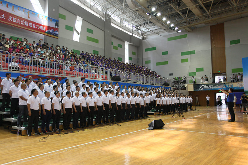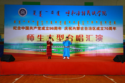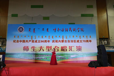此次师生大型合唱汇演活动,以歌声纪念中国共产党成立96周年光辉历史,用实际行动推进学校“两学一做”学习教育常态化制度化工作,有效增强了全校师生的凝聚力和向心力。同时,本次活动是学校庆祝内蒙古自治区成立70周年的重要活动,学校上至领导,下至各民族师生,高度重视,积极参与,经过前期的排练、筛选等环节,最终为全校师生和社会群众呈现了一场视觉和听觉的盛宴。
