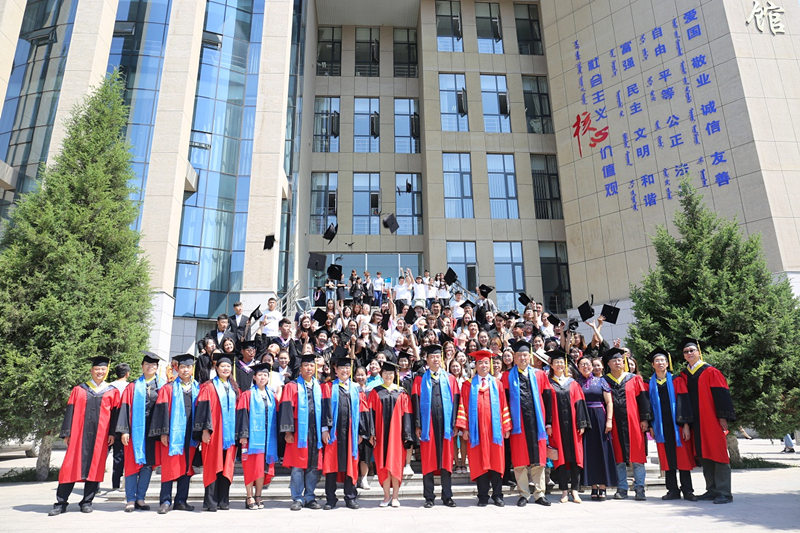 毕业典礼结束后,学校领导与毕业生代表合影留念。(学生工作处供稿)