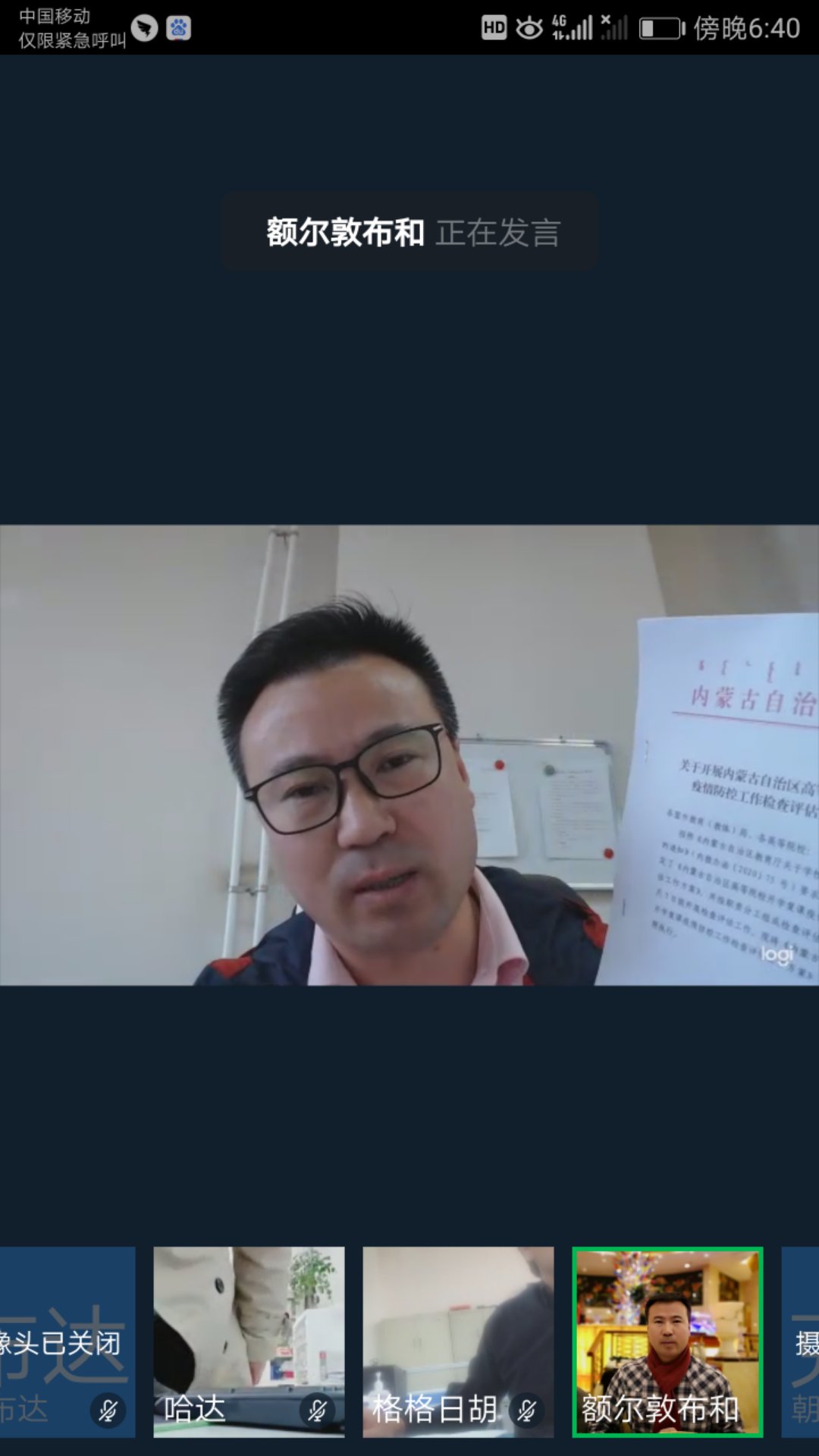 4月27日下午,学校教务处在钉钉软件平台上召开开学复课预案研讨视频工作会议。会议就学校开学复课方案展开专题研讨。教务处处长额尔敦布和、副处长哈斯额尔德尼、副处长佟繁荣、各二级学院院长、副院长和教务处相关人员参加了此次工作会议。教务处处长额尔敦布和主持会议。