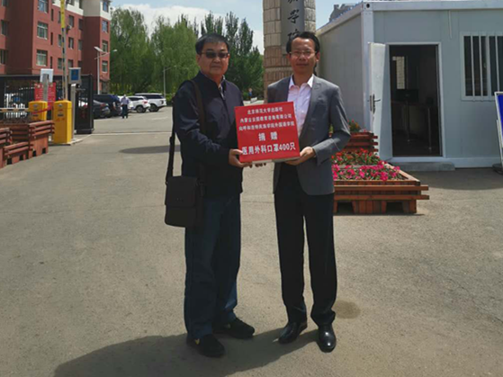 外国语学院党总支布日古德书记代表全院师生接受了捐赠,肖查娜院长代表全院师生递交了感谢信,对企业的大爱之举表示衷心的感谢并致以崇高的敬意,感谢他们雪中送炭,用实际行动促进了爱心、善心与社会责任感的传播;感谢他们众志成城、共克时艰、守望相助的高尚情怀!外国语学院将妥善使用受捐物资,尽心竭力做好校园防疫及毕业生复学工作,全力保障师生的健康安全。
