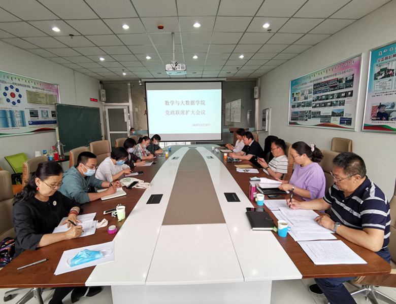 5月29日下午,数学与大数据学院在综合楼807会议室召开党政联席扩大会议,学院全体党政领导班子成员及副科级以上干部参加了本次会议。