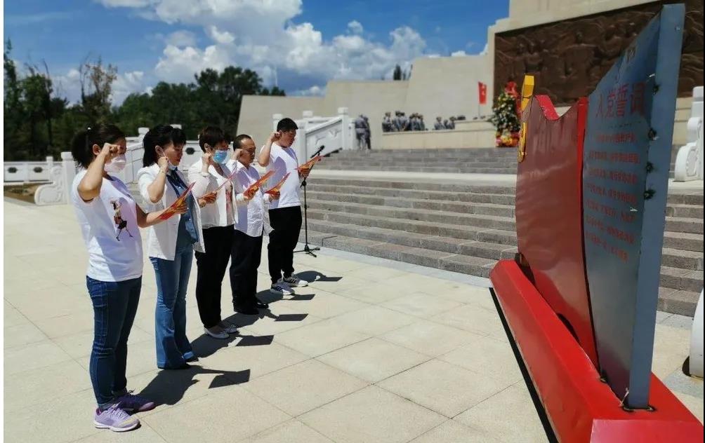 首先大家参观学习了“大青山地区革命英烈”、“大青山地区革命史展览”等展馆。随后,在庄严的人民英雄纪念碑下,面对鲜红的党旗,重温了入党誓词。