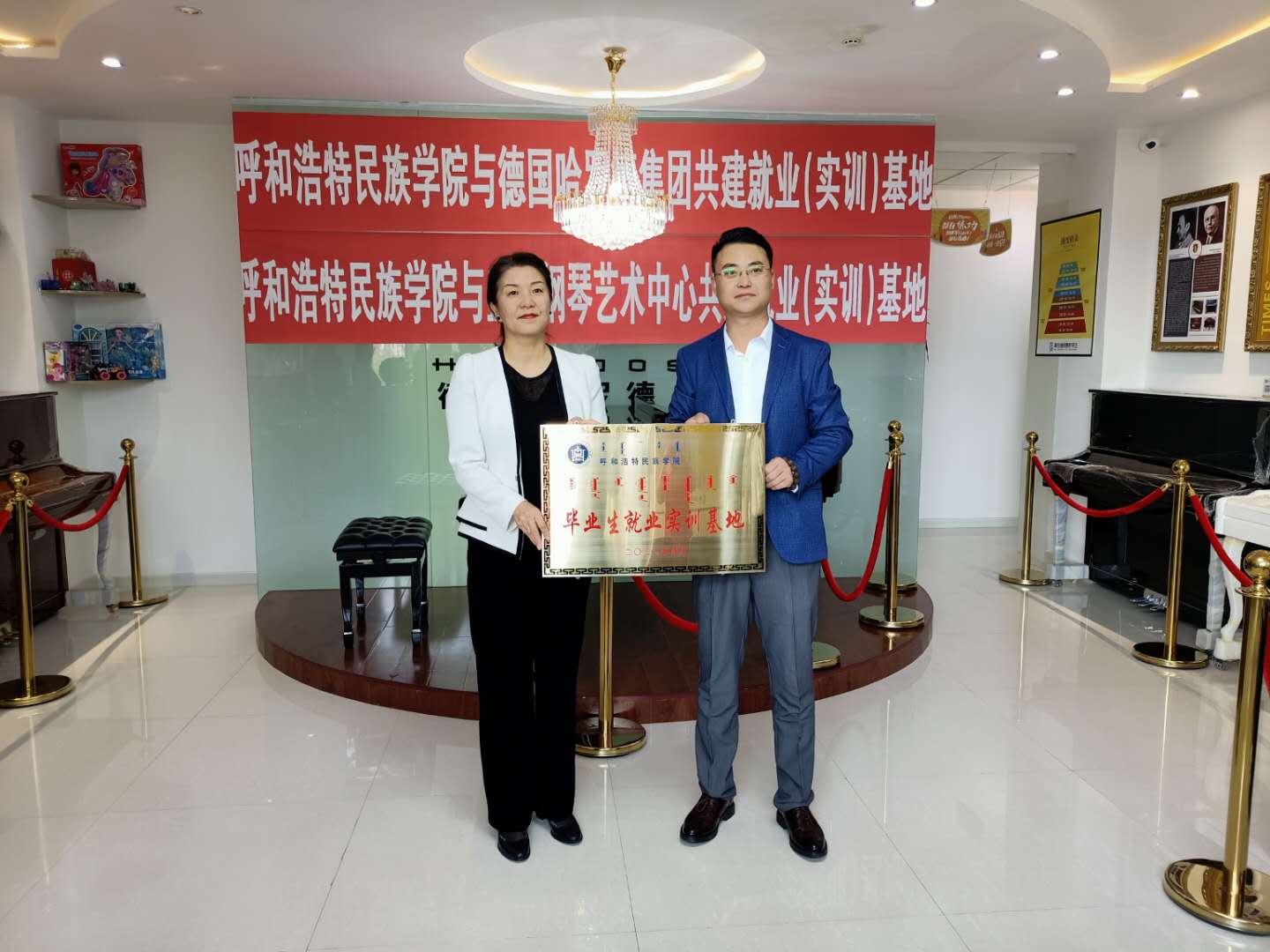 9月22日上午,副校长纳丽娜,就业指导处处长包仓一行赴呼和浩特市赛罕区盛艺钢琴艺术培训中心实地考察,并参加就业实训基地的授牌仪式。