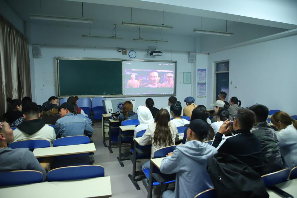 活动一开始,新闻传媒学院团总支旭日老师给大家讲述了关于中华人民共和国成立时候的历史背景和中国共产党艰辛辉煌的奋斗历程,接着让学生会干部代表上台宣读并学习了《关于悬挂国旗庆祝中华人民共和国成立71周年的倡议书》。最后学院团总支为大家播放了影片《我和我的祖国》。