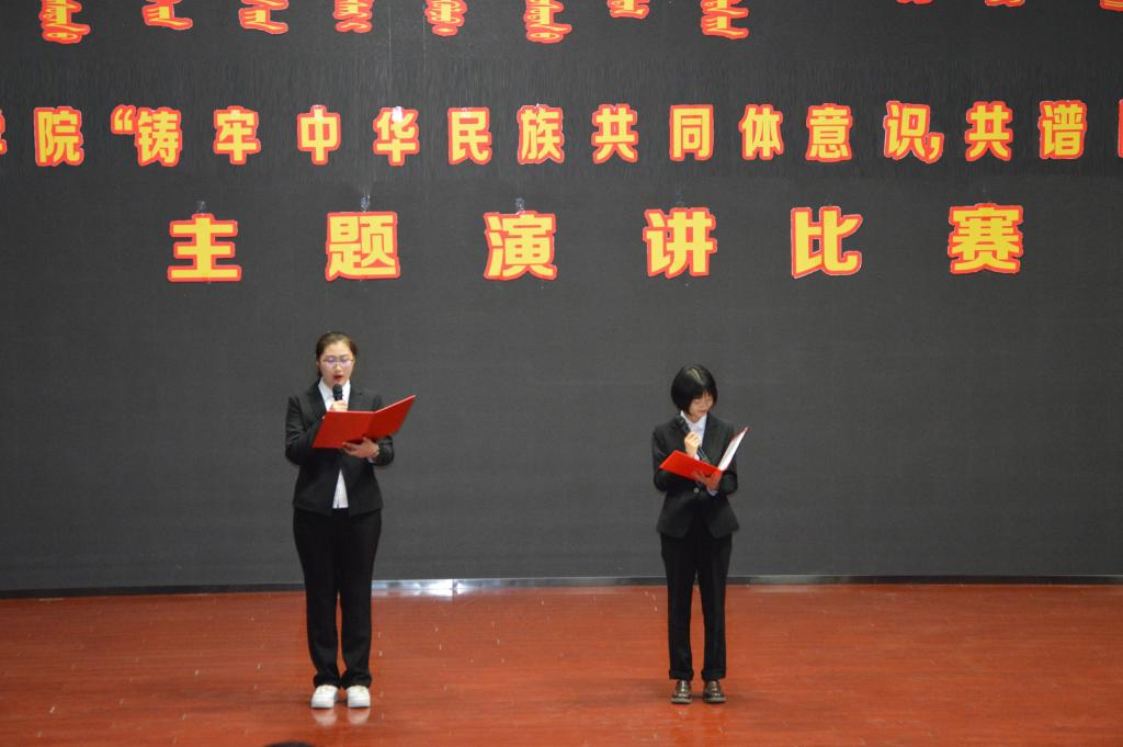 为全面深入持久开展民族团结进步创建工作,引导全校学生进一步铸牢中华民族共同体意识,由学校主办、化学与环境学院承办的"铸牢中华民族共同体意识 共谱民族团结进步主旋律"主题演讲比赛于9月29日19时30分在图书馆二楼报告厅顺利举行。演讲比赛由化学与环境学院党总支副书记鄂亚彬、文学院乌云高娃、文学院韩玉英、蒙古学学院扎拉嘎夫、化学与环境学院乌依勒斯等五位老师担任评委。学校党委委员、统战部部长包君,化学与环境学院党总支书记朱俊杰出席了本次活动,全校150余名学生到场观看比赛。