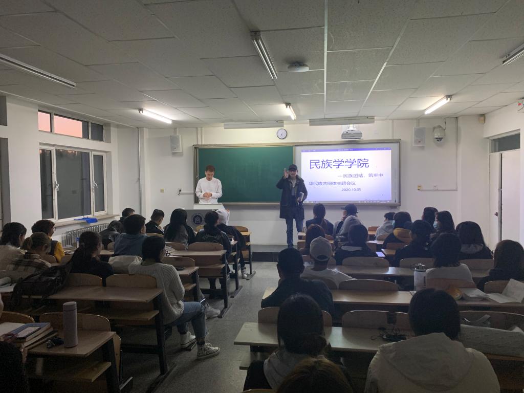 民族学学院团总支于10月5日晚6时30分在尚智楼的04教室,组织58名学生开展了“民族团结,铸牢中华民族共同体”主题团日活动,并观看了民族团结教育片。